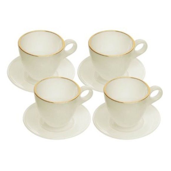20736 CONJ 4 XICARAS DE VIDRO COM FIO DE OURO E PIRES MILKY BRANCA 170ML