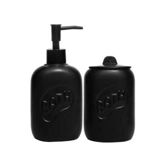 220582 CONJ 2 PEÇAS PARA BINHEIRO DE CERAMICA LETTERS PRETO