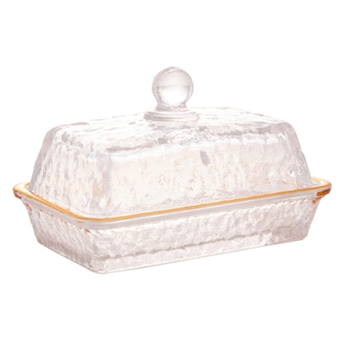 2794 MANTEIGUEIRA DE CRISTAL FIO DE OURO C/TAMPA PETRA 17CM X 10,5CM X10CM
