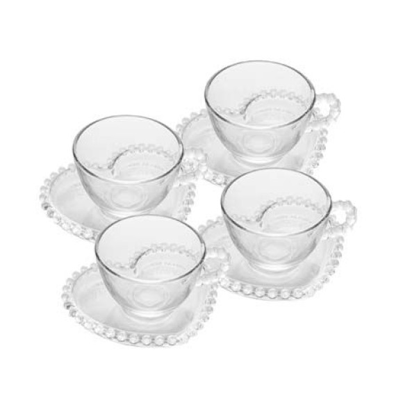 Conjunto 4 Xícaras Chá C/Pires Coração Pearl 180ml