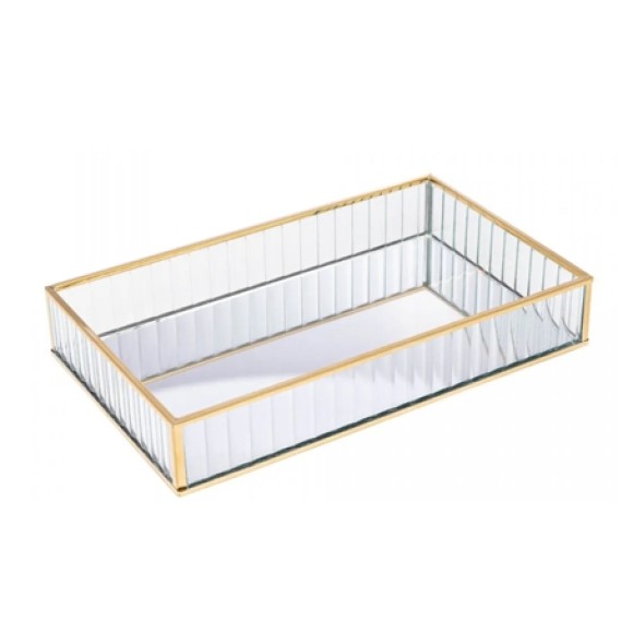 5633 BANDEJA DE METAL COM ESPELHO DOURADA 15X25X4CM