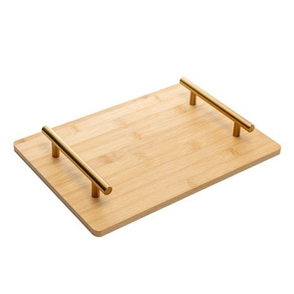 61877 BANDEJA COM ALCA DOURADA SEATTLE 30X21CM NATURAL BAMBU WOLFF